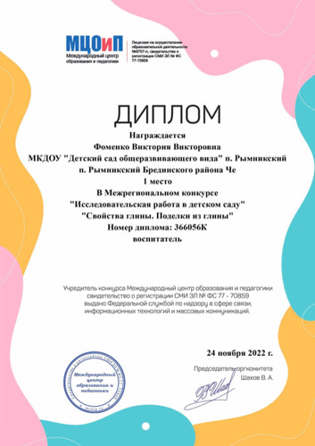 Персональный сайт музыкального руководителя МКДОУ «Детский сад общеразвивающего вида» п. Рымникский Фоменко Виктории Викторовны