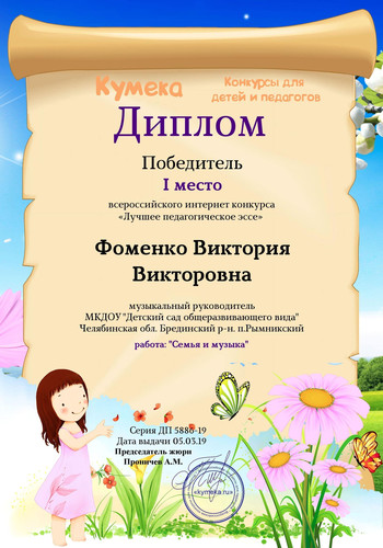 Персональный сайт музыкального руководителя МКДОУ «Детский сад общеразвивающего вида» п. Рымникский Фоменко Виктории Викторовны