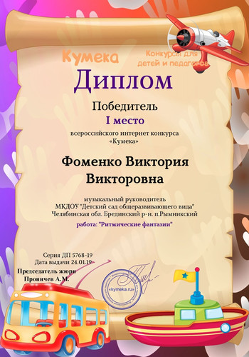 Персональный сайт музыкального руководителя МКДОУ «Детский сад общеразвивающего вида» п. Рымникский Фоменко Виктории Викторовны